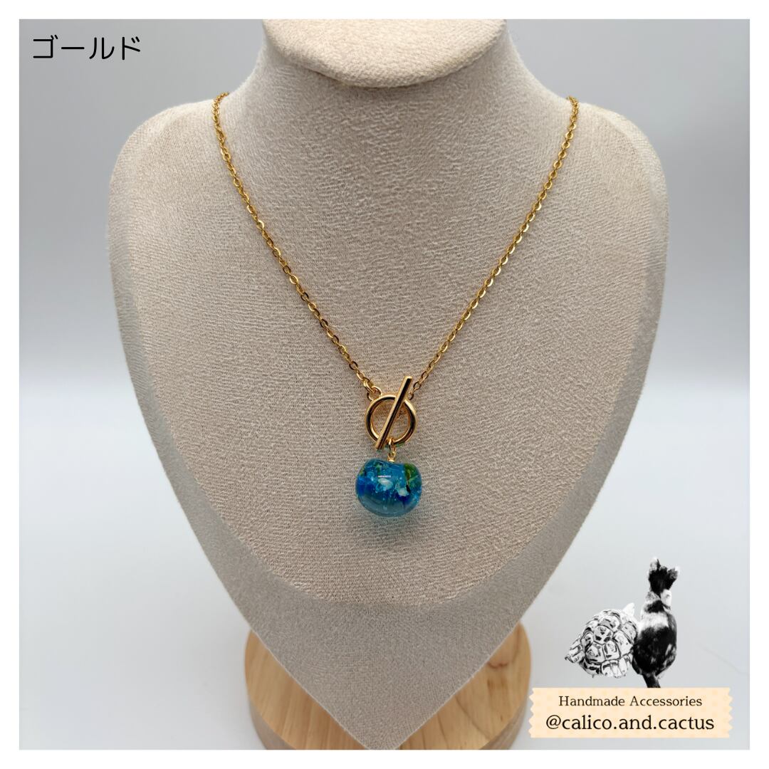 夏らしい琉球ガラスを閉じ込めた林檎をペンダントに仕上げました。