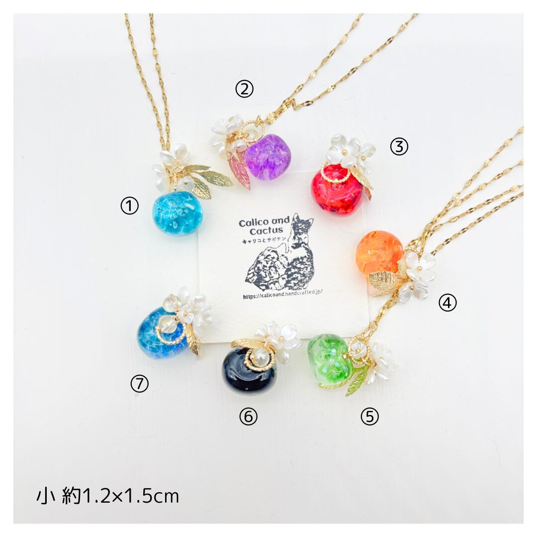 カラフルなクリスタルを閉じ込めて形成した果実のペンダントです。