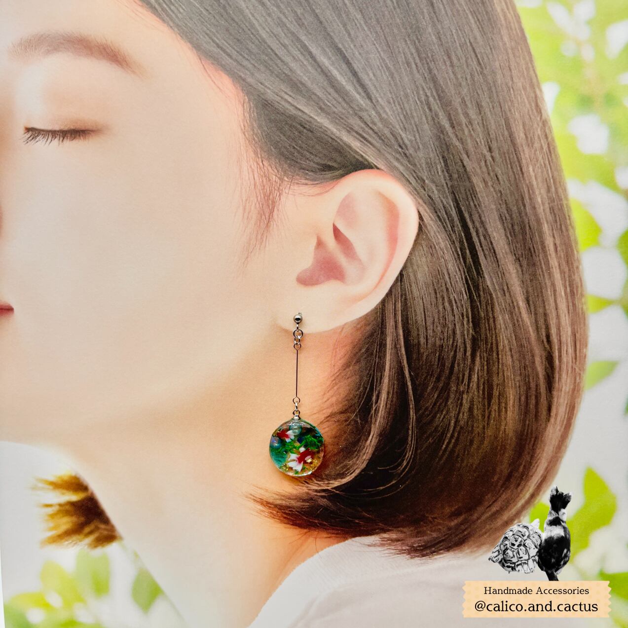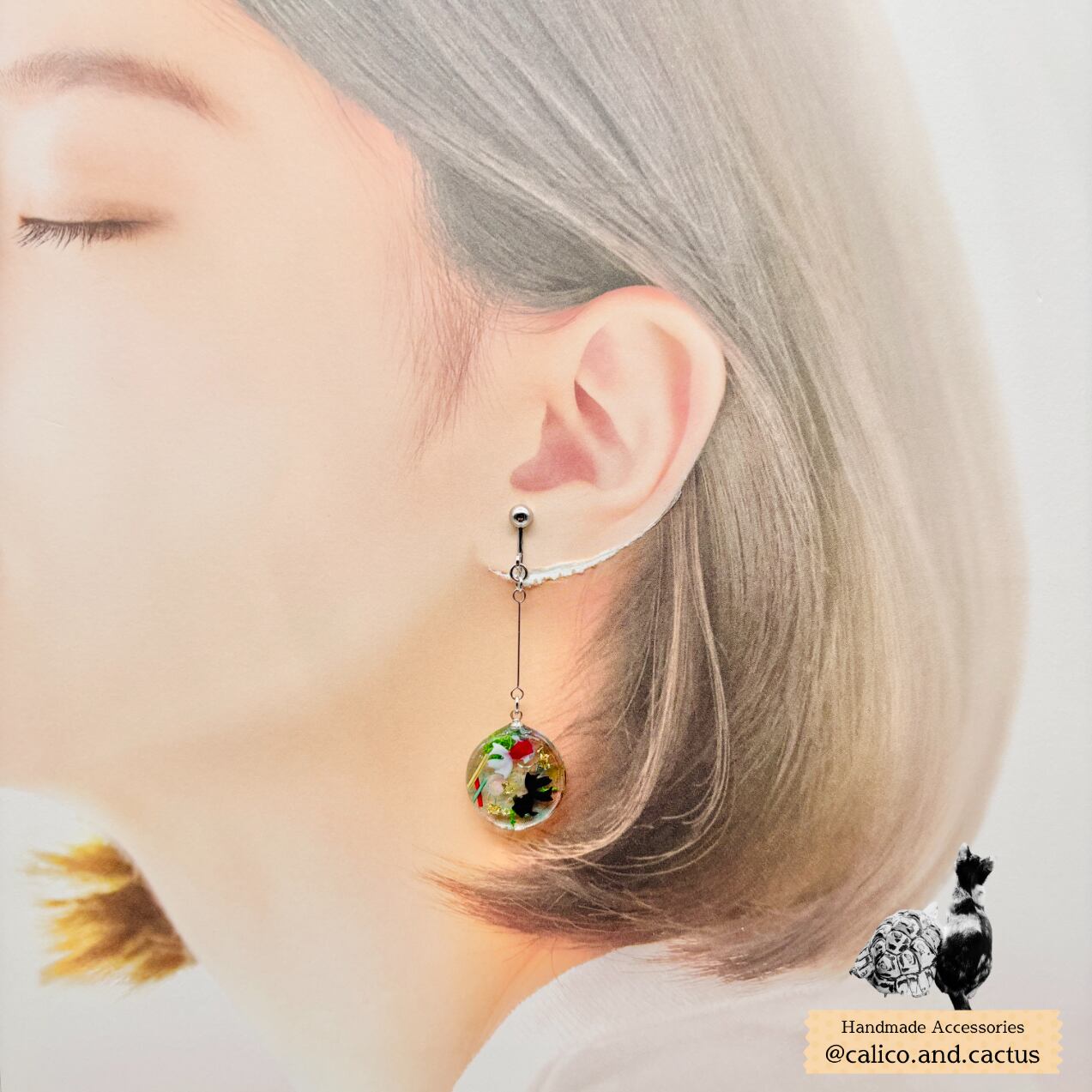 耳に触れるイヤリング・ピアス金具にはサージカルステンレスを使用しておりますが、コネクター部分はアレルギー非対応となります。ご了承ください。