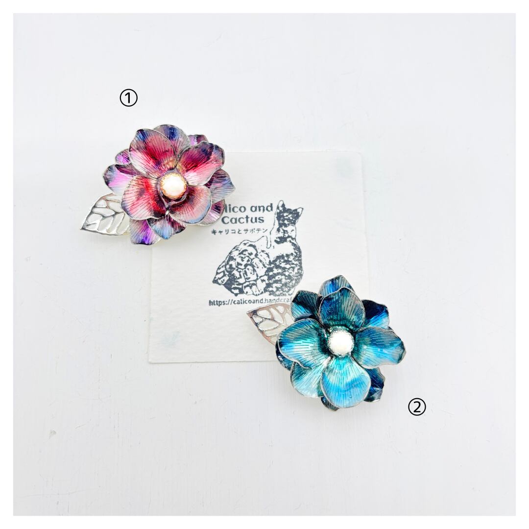 グラデーションで丁寧に色付け・形成したメタルフラワーを、ブローチに仕立てました。