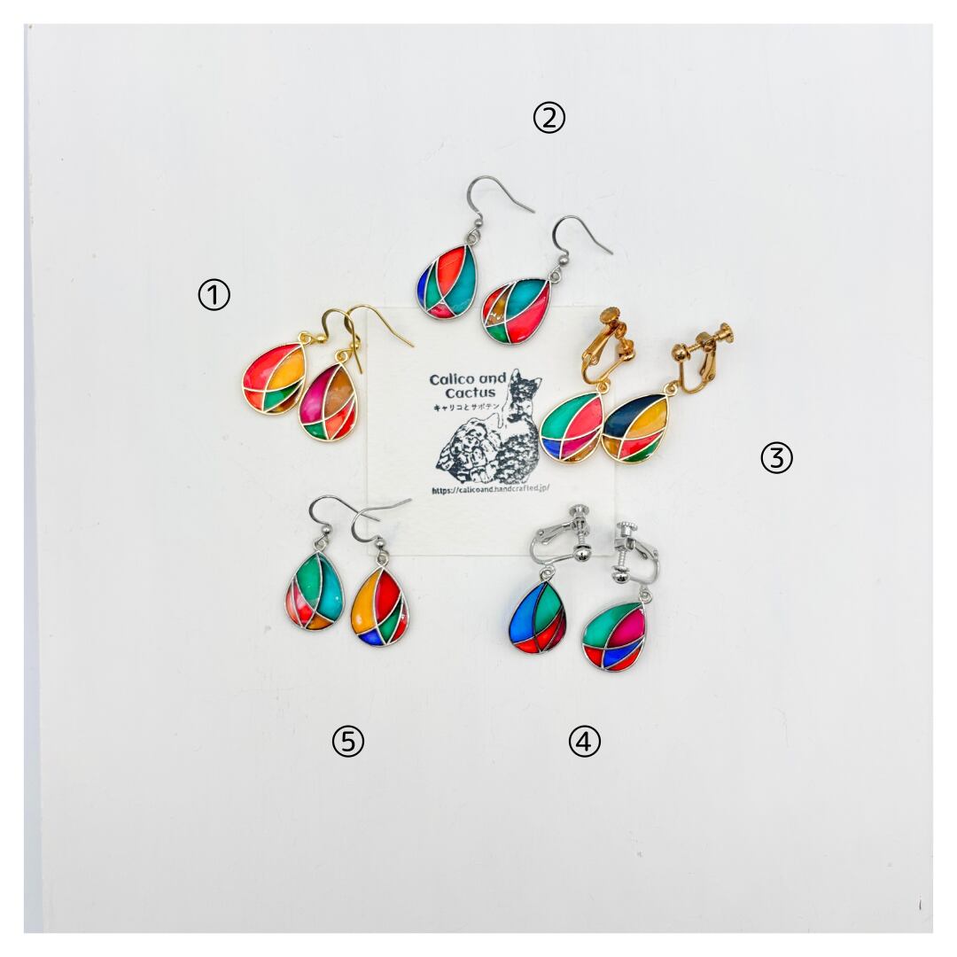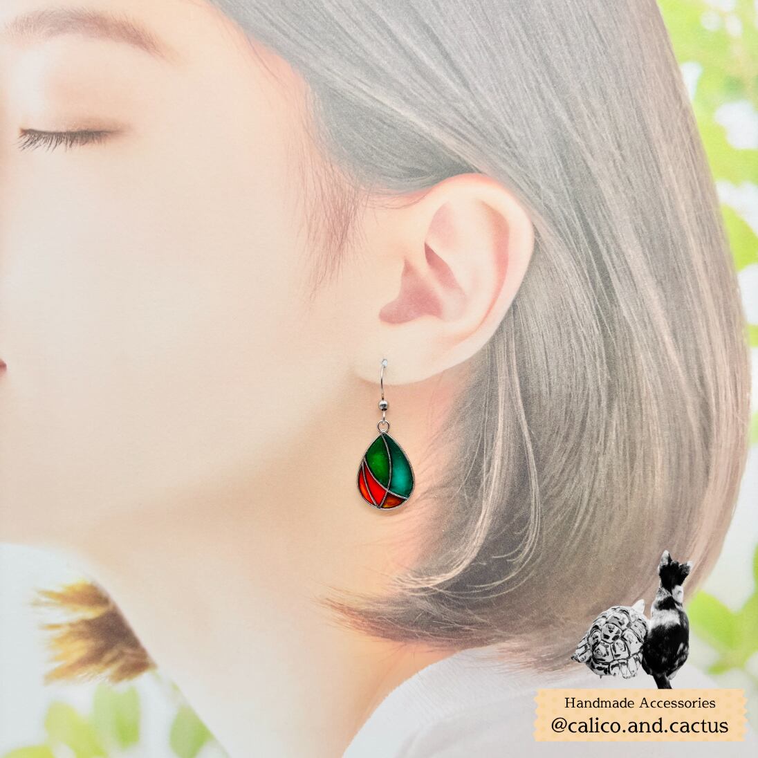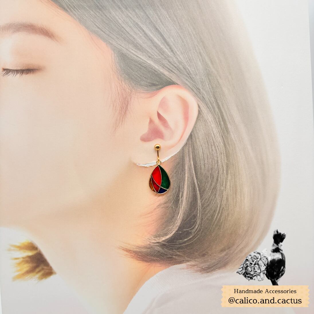 モダン~ビビッドなカラーでステンドグラス風に色付けしたドロップの耳飾りです。
