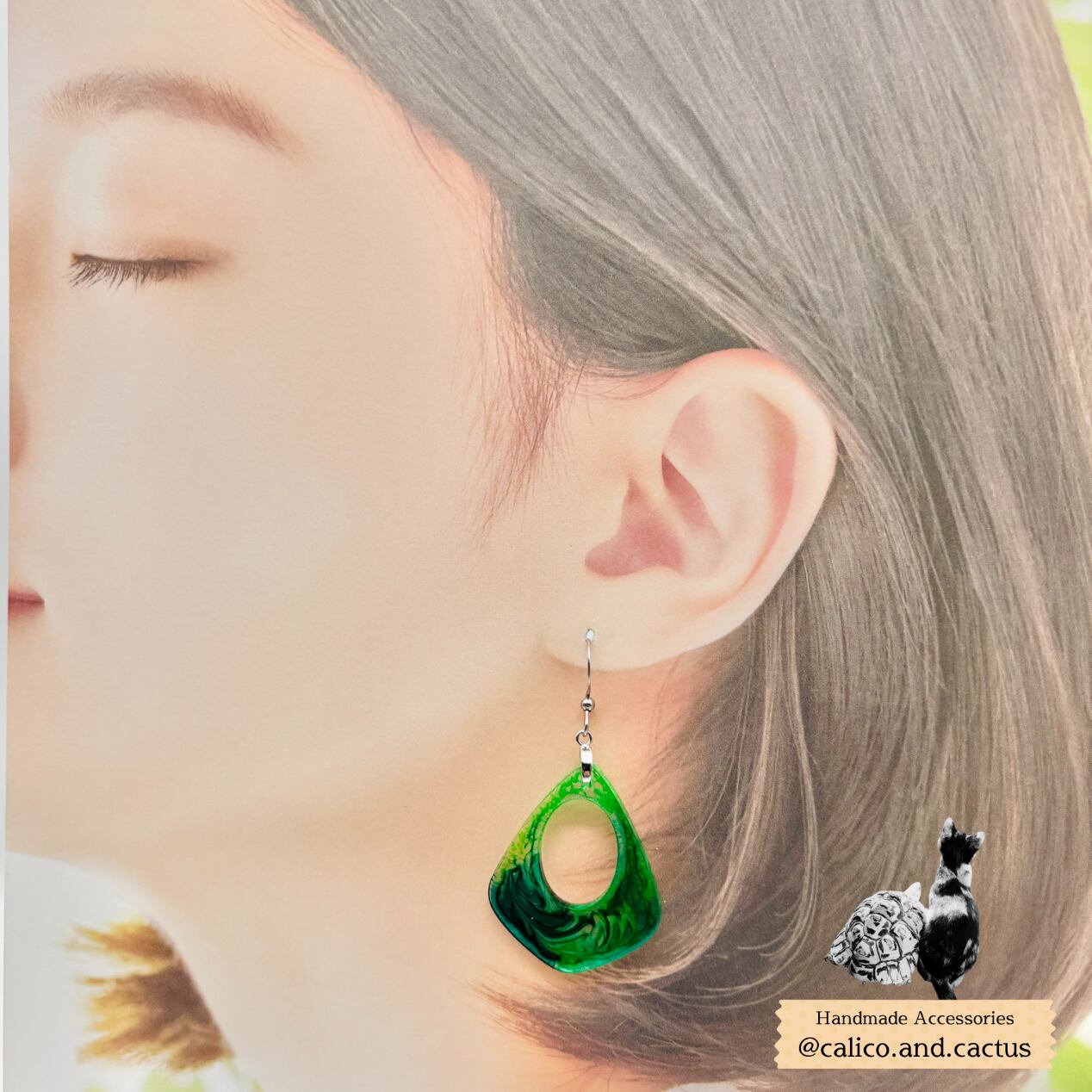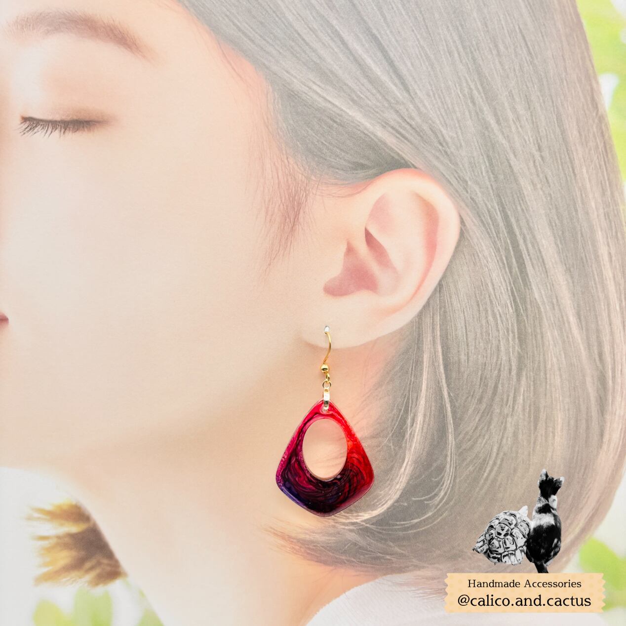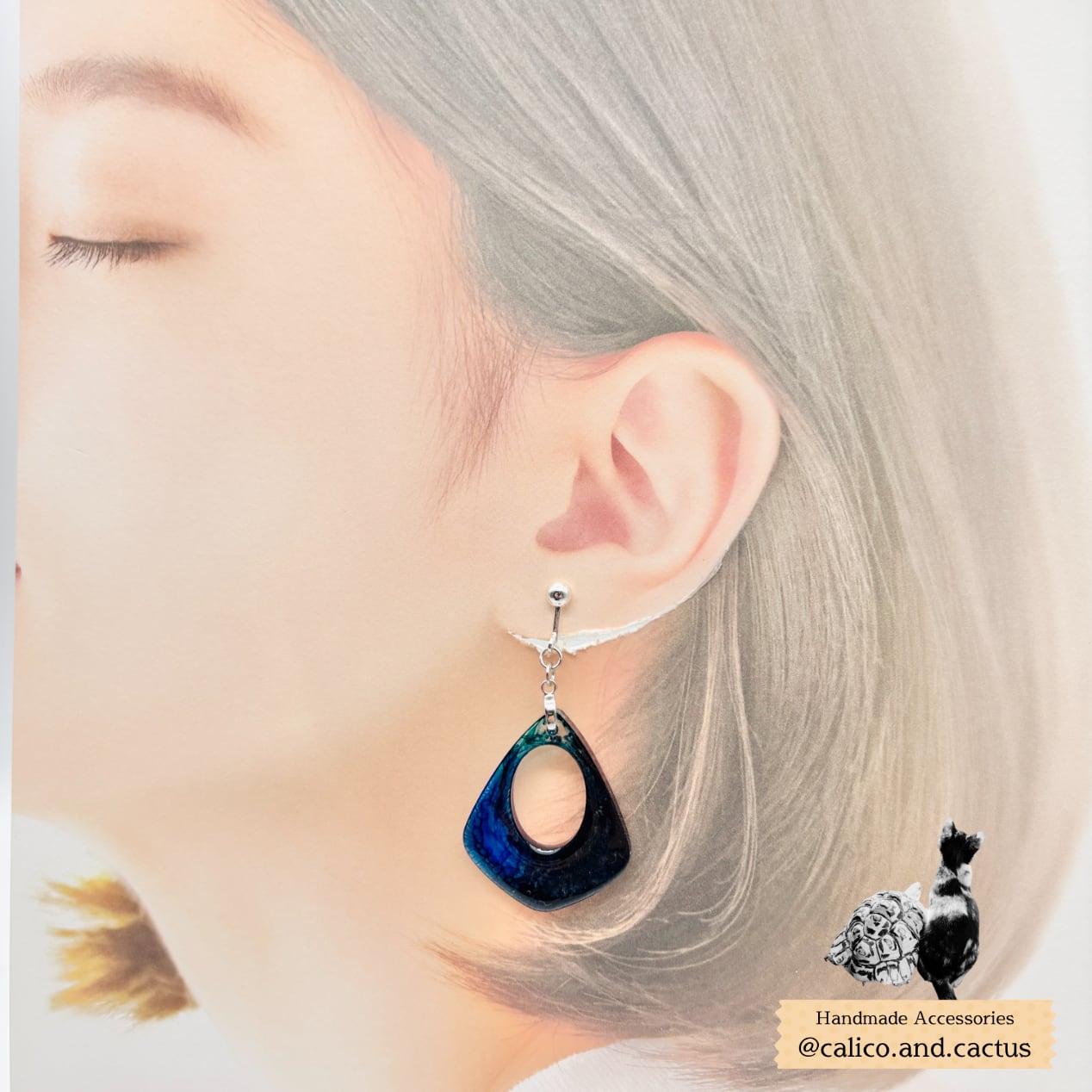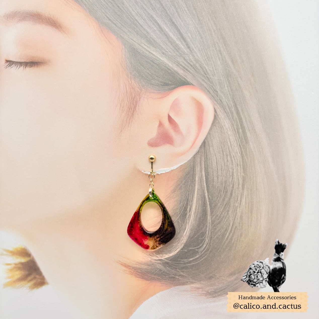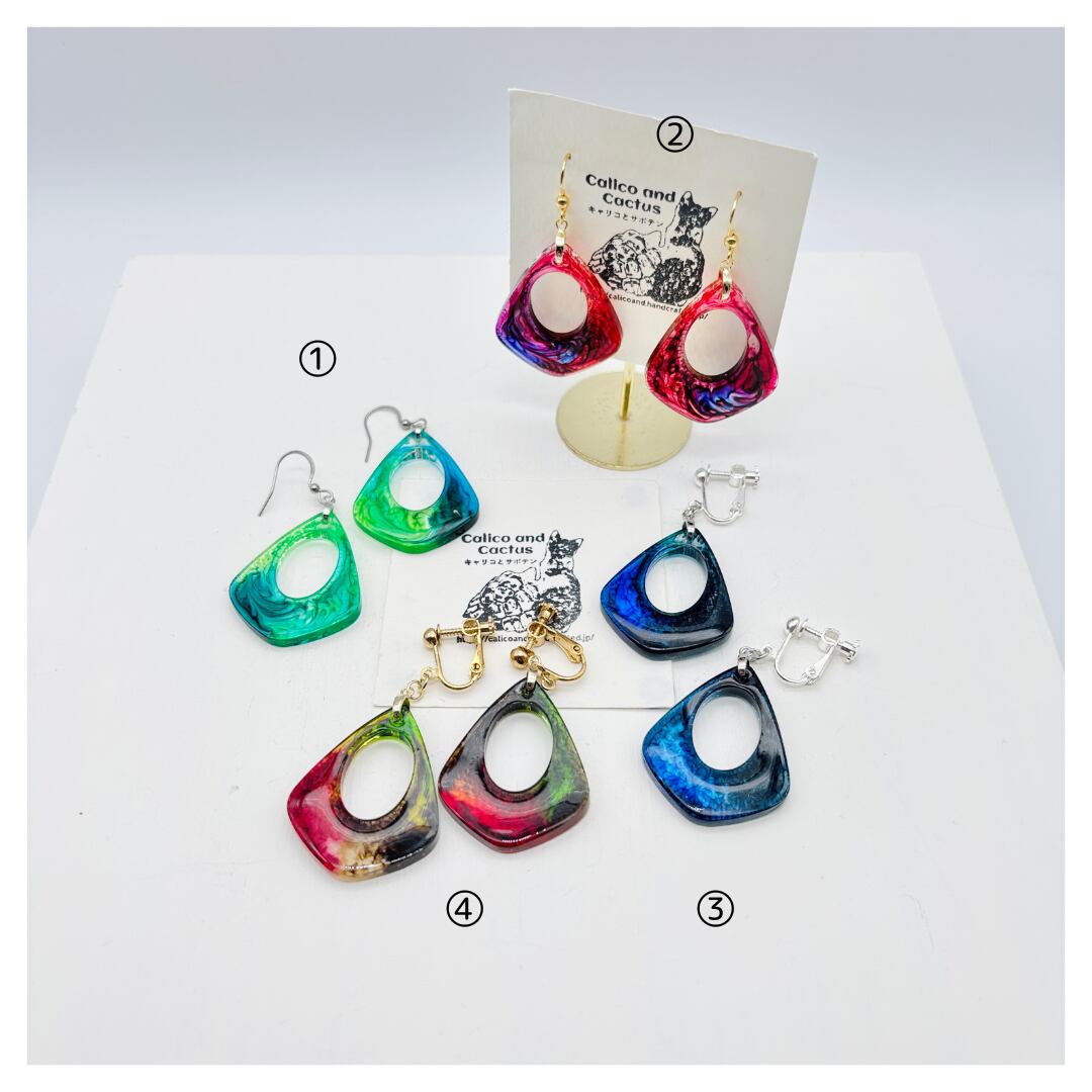 一期一会のデザインが魅力的なインクアートで彩られた、存在感のある耳飾りです。
